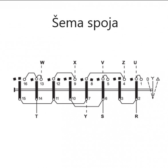Grebenasti prekidač, preklopnik 25-12-U zvezda - trougao, 25A. Za čeonu, odvojenu ugradnju i u plastičnom kućištu. Odlikuje se savremenom konstrukcijom, dobrim električnim i mehaničkim osobinama.