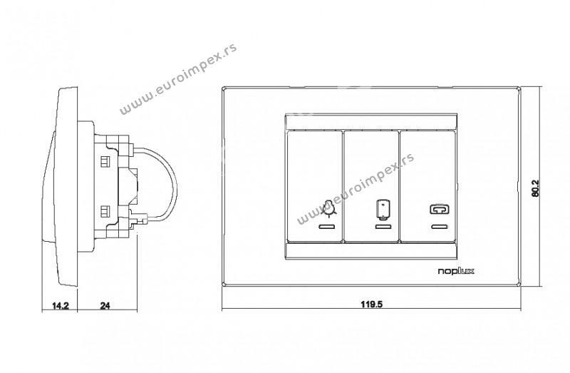 Sa montažnom kutijom PM3, dimenzije ugradne kutije - 106 X 74 X 50 mm
