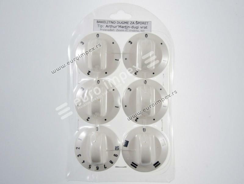 SET BAKELITNIH DUGMADI ZA ŠTEDNJAK ARTHUR MARTIN DUGI VRAT BELI (6 kom) DS007