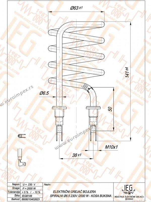GREJAČ BOJLERA 2kW Cu fi6.5 KOSE BUKSNE IEGB149