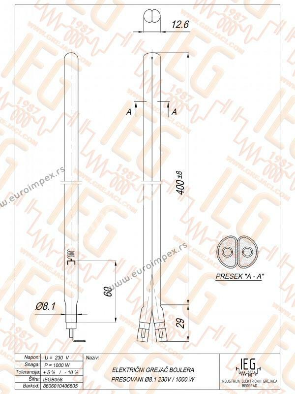GREJAC BOJLERA SUVI PRESOVANI Y SHAPE GORENJE,LEOV FI8,1 230V 1000W L-400MM IEGB058