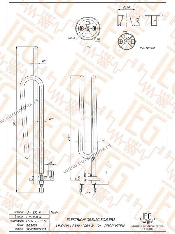 GREJAC ZA BOJLER 2000W fi8,1 PRODUŽENI LIKO METALAC IEGB054 (fi 48mm) 20115800.2 GC.01.019.01