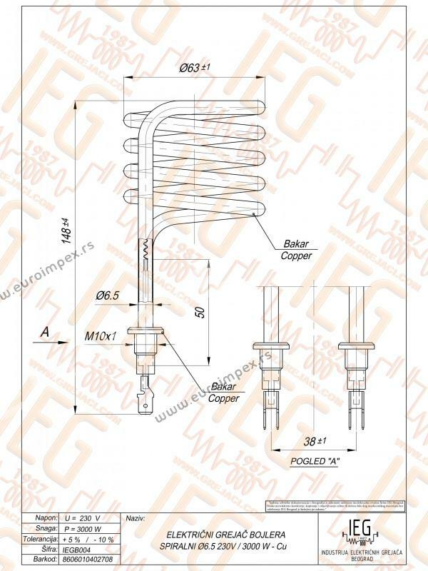 GREJAC ZA BOJLER 3000W SPIRALNI fi6,5 Cu IEGB004