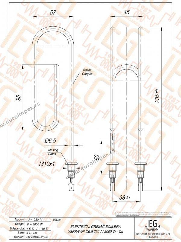 GREJAC ZA BOJLER 3000W USPRAVNI fi6,5 Cu IEGB003