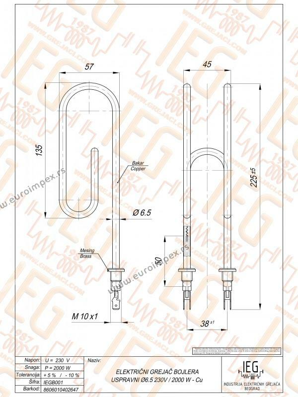 GREJAC ZA BOJLER USPRAVNI 2KW fi6,5 Cu IEGB001