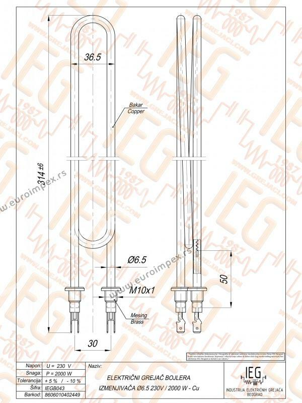GREJAC ZA IZMENJIVAC 2kW fi6,5 Cu IEGB043