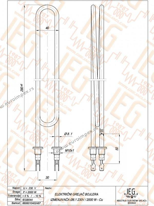 GREJAC ZA IZMENJIVAC BOJLERA 2kW fi8,1 Cu IEGB044