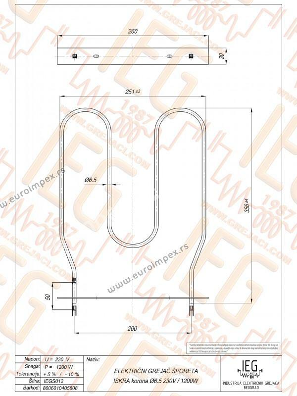 GREJAC ZA EL. ŠTEDNJAK 1200W ISKRA CORONA IEGS012 20220300.1