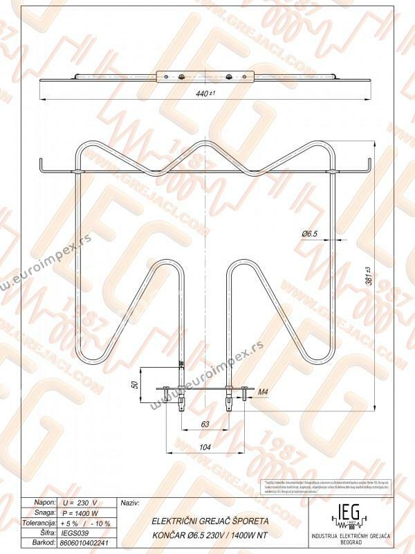GREJAC ZA EL. ŠTEDNJAK KONCAR NT 1400W IEGS039 S230.1