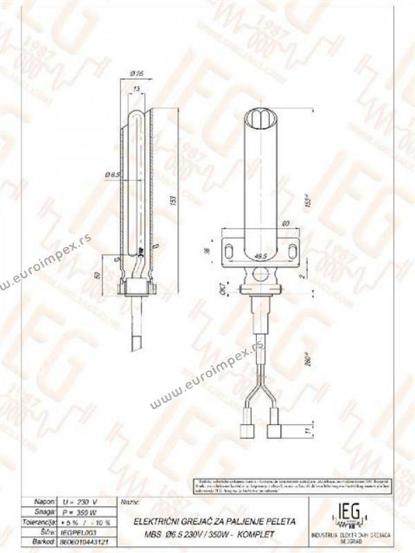 GREJAC ZA PALJENJE PELETA 350W 230V MBS KOMPLET sa nosacem AiSi304 fi6,5mm IEGPEL003