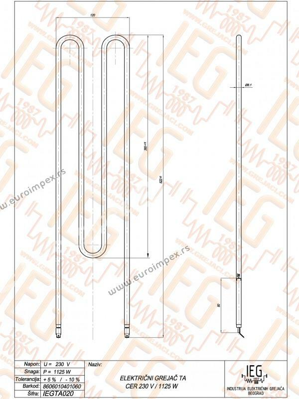 IEGTA020 El. cevni grejač TA peći CER Inox Ø8.1mm ~ 230V 1125W L=500mm