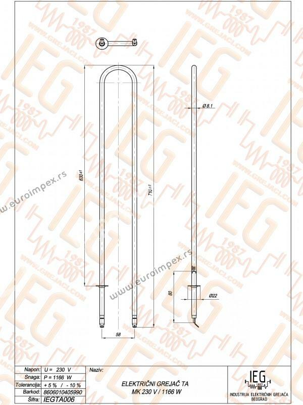 IEGTA006 El. cevni grejač TA peći MAGNOHROM Inox Ø8.1mm ~ 230V 1166W L=700mm