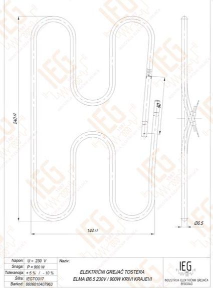 GREJAC TOSTERA ELMA 900W 230V fi6,5 Aisi 304 IEGTO017